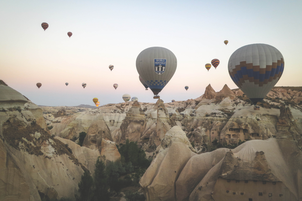 Uma das experiências mais memoráveis na Capadócia é fazer um passeio de balão de ar quente sobre suas paisagens deslumbrantes. Ao flutuar silenciosamente pelo céu ao amanhecer, você terá vistas panorâmicas incomparáveis das formações rochosas, vales verdejantes e vilarejos pitorescos da região. É uma experiência verdadeiramente mágica e uma maneira única de apreciar a beleza da Capadócia.