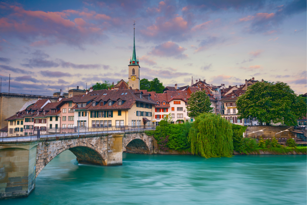 A capital da Suíça, Berna, é uma cidade encantadora com um centro histórico medieval que é Patrimônio Mundial da UNESCO. Passeie pelas ruas de paralelepípedos, visite a Torre do Relógio (Zytglogge), e explore a famosa Casa de Einstein, onde o cientista viveu enquanto trabalhava em suas teorias revolucionárias. Berna também oferece vistas espetaculares sobre o rio Aare, que contorna a cidade. Durante o verão, é comum ver locais e turistas flutuando no rio cristalino, uma experiência divertida e refrescante.