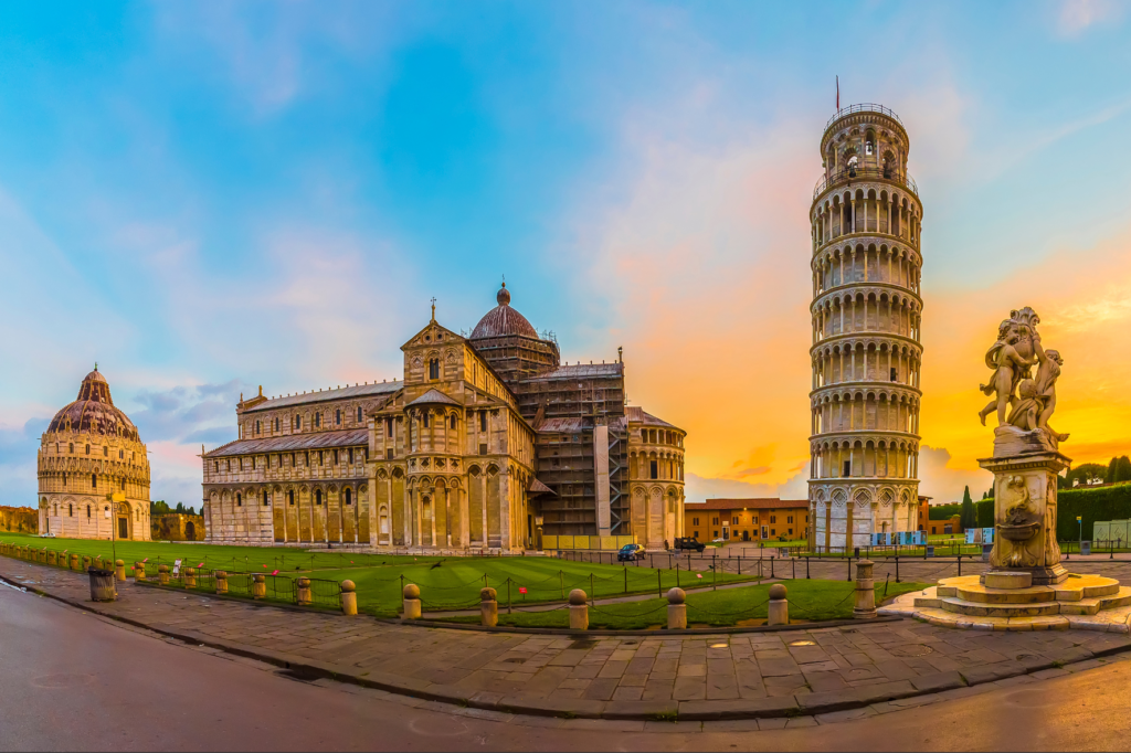 A Torre de Pisa é outro ícone italiano conhecido mundialmente. Famosa por sua inclinação, essa torre campanária começou a inclinar-se logo após o início de sua construção no século XII devido ao solo instável. Apesar de sua inclinação, a torre tem se mantido de pé ao longo dos séculos e hoje atrai milhões de turistas que desejam tirar a clássica foto “segurando” a torre.
