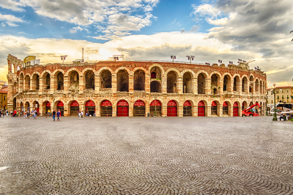 A Arena de Verona é um anfiteatro romano construído no século I d.C., semelhante ao Coliseu em Roma, mas em menor escala. Ainda em uso hoje, a arena é famosa por sediar espetáculos de ópera e outros eventos culturais. Assistir a uma apresentação na Arena de Verona é como viajar no tempo, em meio a uma atmosfera histórica única.
