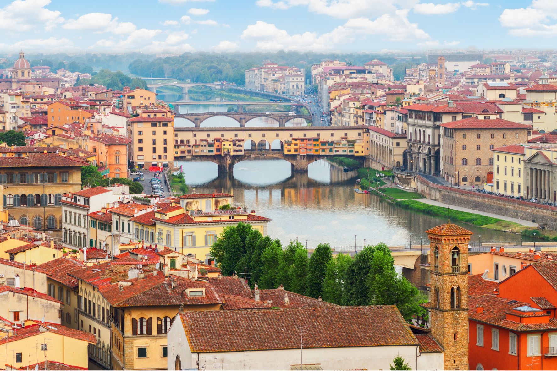 Viagem para a capital da Toscana, FLORENÇA, na chegada, paramos para tirar uma foto no mirante de Michelangelo, onde podemos ver uma das mais belas vistas sobre a cidade. Em seguida, caminharemos até o centro histórico, onde faremos uma visita com um guia local da capital toscana, uma das cidades mais visitadas do país, considerada o berço do Renascimento e alguns dos artistas e pensadores mais influentes da história, como Leonardo da Vinci, Michelangelo, Botticelli ou Rafael. Os destaques incluem a catedral gótica (Duomo), a antiga ponte de pedra (Ponte Vecchio) com suas ourivesarias e a Piazza della Signoria – o coração político da cidade com a prefeitura em um edifício medieval.Nota: recomendamos usar calçados confortáveis para a visita a Florença.