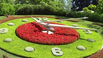 Um dos símbolos mais famosos de Genebra é o grande relógio de flores que funciona normalmente e muda de cor conforme as estações.