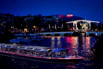 Nosso cruzeiro noturno tem 90 minutos de duração para apresentar a você o ambiente único de Amsterdã a noite. Milhares de luzes destacam as centenas de pontes e os famosos edifícios ao lado dos canais. Nossos garçons recebem você a bordo do nosso barco confortável e luxuoso. (Ingressos desde R$83,00 por pessoa)
